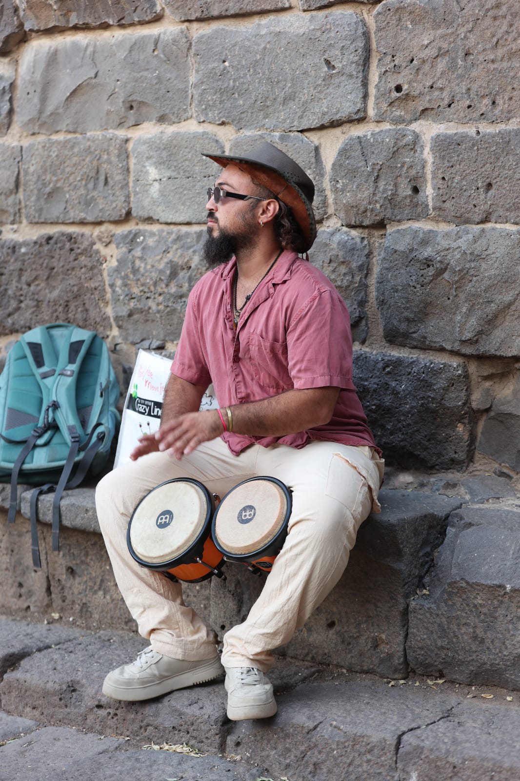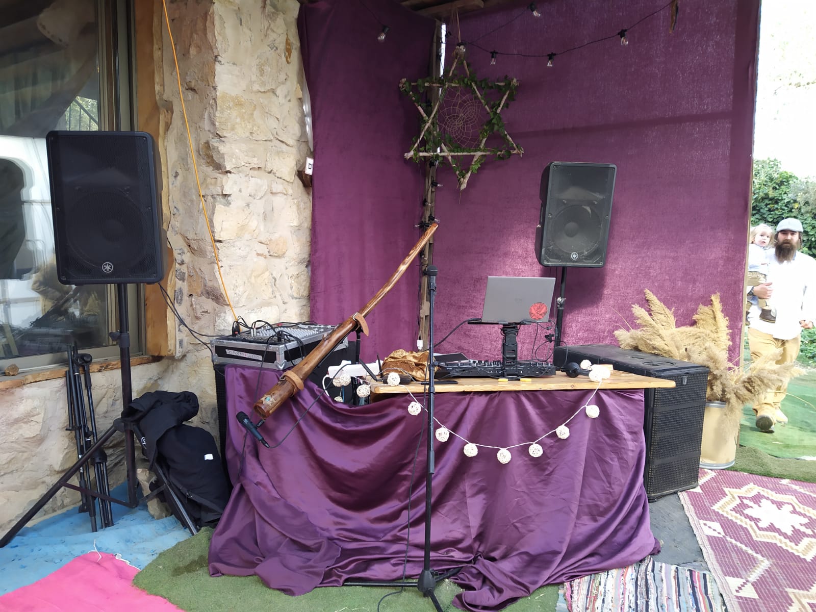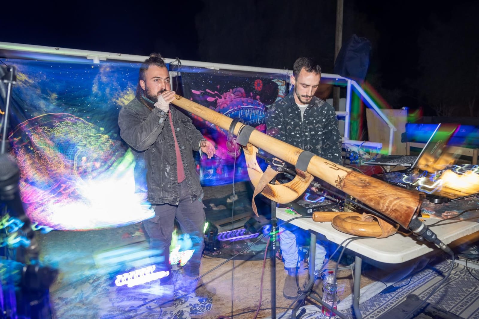 ואני מנגן על דיג'רידו ותופים לייב על הסט